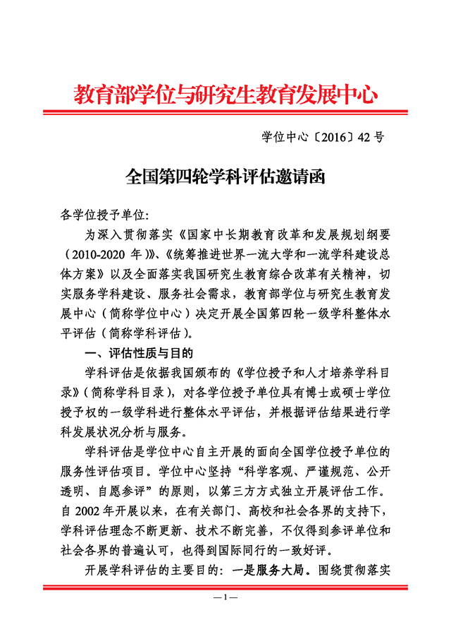 近日,教育部学位与研究生教育发展中心在已进行三轮学科评估的基础上,正式启动了第四轮学科评估工作,这是我国近些年来影响力最大、影响范围最广的学科水平评估。积极参与学科评估,不仅是对学科建设水平的检验,也是为今后学科的发展提供思路和参考。
